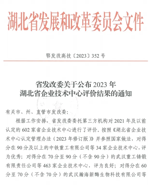 完成湖北省發(fā)改委組織的省企業(yè)技術(shù)中心三年評價(jià)并獲評“良好”