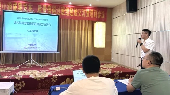 武漢市政院“拾光隧道QC小組”組員龍凡對“地鐵隧道穿越極硬巖的新方案研究”課題進行了成果發布。“拾光隧道QC小組”為解決地鐵隧道穿越極硬巖傳統方法安全難以保證、工作效率較低等痛點問題,研發了一種地鐵隧道穿越極硬巖的全新技術方案,攻克了復雜地質和敏感環境兩大難題。該研究成果在“武漢地鐵12號線港口村站~丁家咀站區間隧道工程”中,實現盾構穿越極硬巖深孔爆破預處理在武漢軌道交通地下區間的首次應用。“拾光隧道QC小組”對該創新成果進行了標準化建設,形成了通用設計圖和成套技術方案,現已在全公司推廣應用。