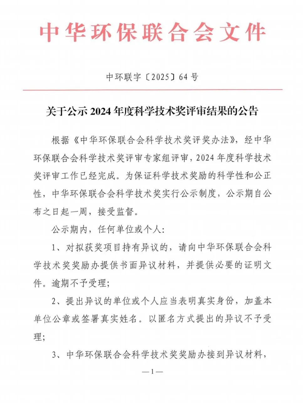 ? ? 中華環(huán)保聯(lián)合會(huì)是經(jīng)中華人民共和國(guó)國(guó)務(wù)院批準(zhǔn),民政部注冊(cè),國(guó)家環(huán)保總局主管,由熱心環(huán)保事業(yè)的人士、企業(yè)、事業(yè)單位自愿結(jié)成的、非營(yíng)利性的、全國(guó)性的社會(huì)組織。“中華環(huán)保聯(lián)合會(huì)科學(xué)技術(shù)獎(jiǎng)”是在科技部正式備案的全國(guó)性獎(jiǎng)項(xiàng)。