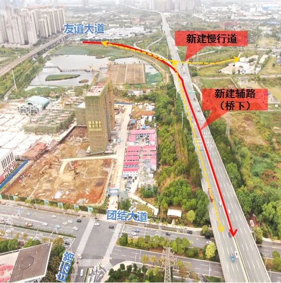 為解決周邊慢行系統連接缺失問題,本項目新建慢行道連接友誼大道立交東西兩側及友誼大道至團結大道,并與楊春湖公園綠道連接成環,在立交范圍內構建一個更加安全、便捷、舒適的慢行交通系統。