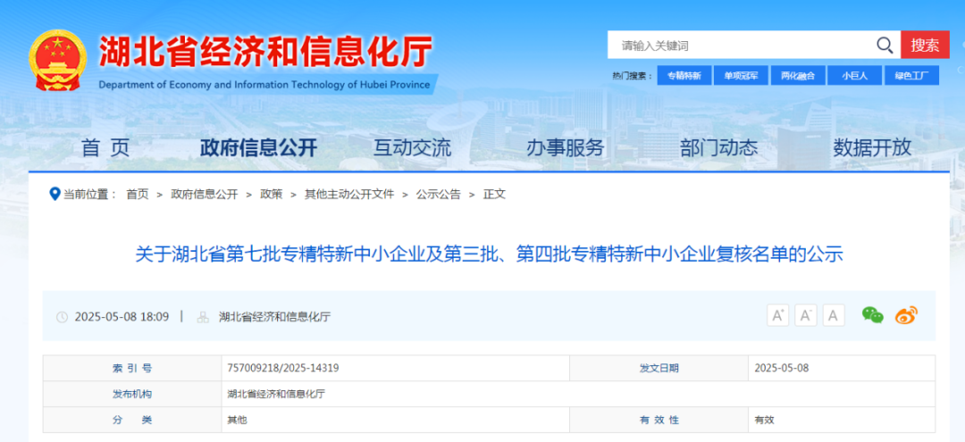 近日,湖北省經濟和信息化廳官網正式公示了2025年度湖北省第七批“專精特新”中小企業名單,武漢市政院武漢路源工程質量檢測有限公司(以下簡稱路源檢測公司)成功通過評審,躋身省級“專精特新”企業行列。