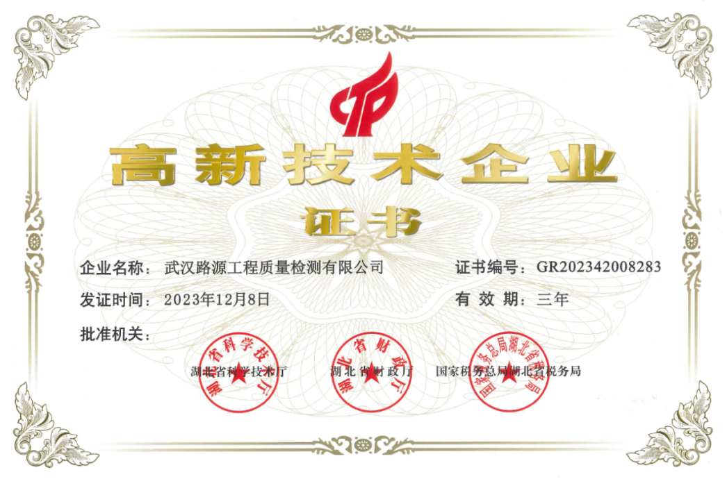 2023年,再次順利通過湖北省“高新技術企業”復審認定,這一成就充分展示了路源檢測公司在科技創新、科技研發、知識產權及產品服務等方面的綜合競爭力。