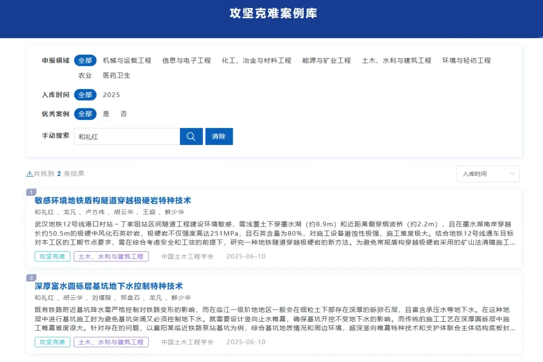 ? ? ?2025年6月4日,中國科協發布了《關于企業科技工作者評價案例成果征集遴選活動結果的通知》,公布了《企業科技工作者評價案例庫》,其中攻堅克難案例843項、成果轉化案例726項。武漢市政院巖土博士創新工作室申報的“敏感環境地鐵盾構隧道穿越極硬巖特種技術”、“深厚富水圓礫層基坑地下水控制特種技術”兩項攻堅克難案例與技術均成功入庫。