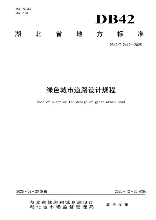? ? 近日,由武漢市政院主持編制的湖北省《綠色城市道路設(shè)計規(guī)程》(DB42/T 2419-2025)地方標準,經(jīng)湖北省住房和城鄉(xiāng)建設(shè)廳、湖北省市場監(jiān)督管理局聯(lián)合批準發(fā)布,將于2025年12月20日起正式實施。該標準是公司聯(lián)合行業(yè)多家單位,歷時三年深入調(diào)研國內(nèi)典型城市綠色道路建設(shè)實踐,系統(tǒng)總結(jié)湖北省實踐經(jīng)驗的重要成果。