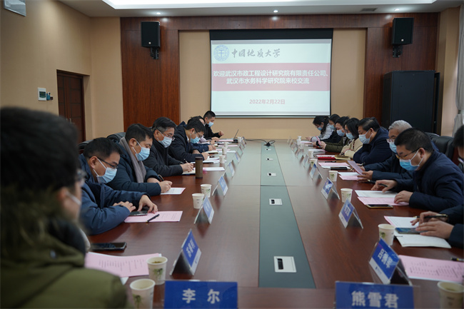 2022年2月22日,公司副總經理、總工程師周俊,副總經理饒世雄攜公司水環境研究院博士團隊前往中國地質大學(武漢),就污水處理與資源化、水環境治理項目與中國地質大學(武漢)、武漢市水務科學研究院的院士、專家團隊開展合作交流。中國地質大學(武漢)校長王焰新院士,武漢市水務科學研究院院長葉輝、副院長李敏,及三方相關領導和技術專家出席會議。中國地質大學(武漢)校友與社會合作處處長陳華榮主持會議。