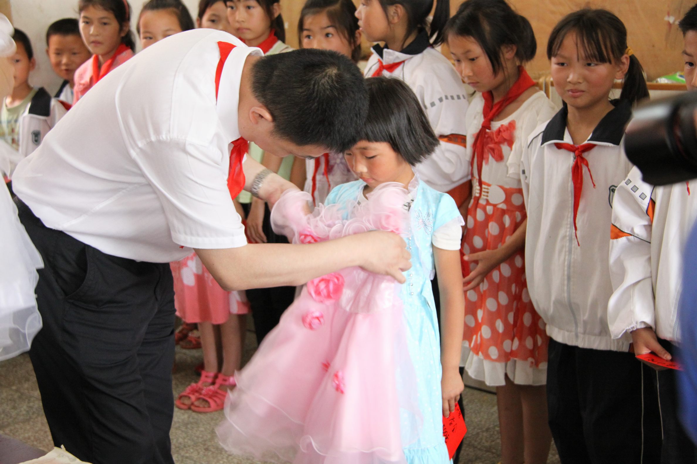 ??? 在活動現場,志愿者代表見證了該校新一批少先隊員入隊的莊嚴時刻,并接受了學生代表親手系上的紅領巾。蔡輝書記勉勵孩子們樹立遠大的理想,培養高尚的道德情操,掌握豐富的科學知識,努力成長為有理想、有道德、有文化、有紀律的社會主義事業的合格接班人。