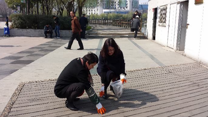 ??? 隨后,黨員們跟隨著區(qū)湖泊管理所的專家來到了公司附近的后襄河公園,開展了湖泊清潔活動。大家沿著湖邊行走,撿拾起路邊、湖邊的垃圾。湖泊管理所的專家以后襄河公園的湖泊現(xiàn)狀為例,講解了湖泊保護(hù)的常識。