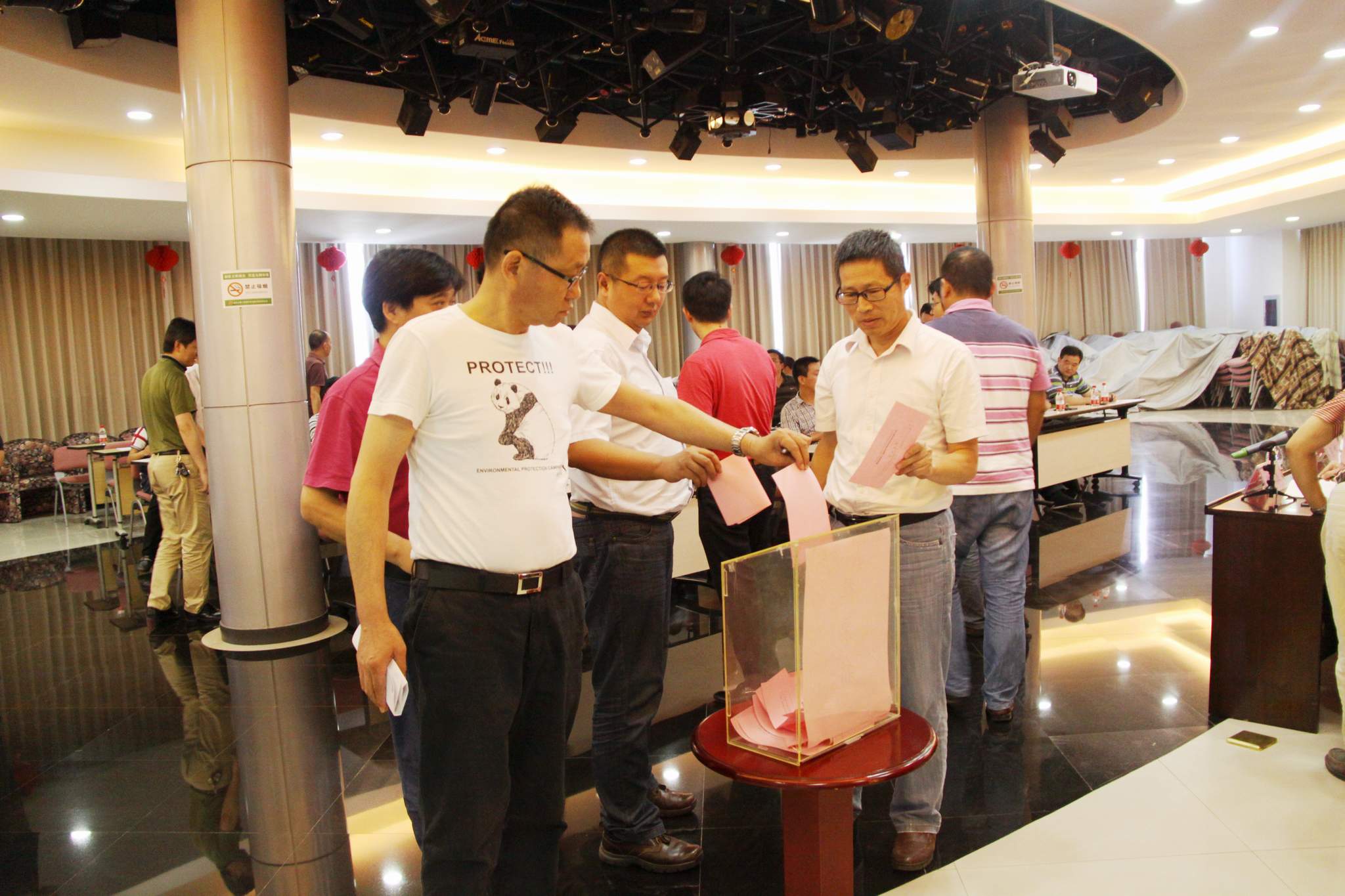 ??? 大會由副總經理趙世杰同志主持,他通報了公司2013年度《股利分配方案》,宣讀了《職工持股會股利分配原則》,并對集體股紅利暫不分配的緣由向會員代表進行了說明。大會由職工持股會會員代表以無記名投票的方式,表決通過了《2013年度職工持股會股利分配原則》。