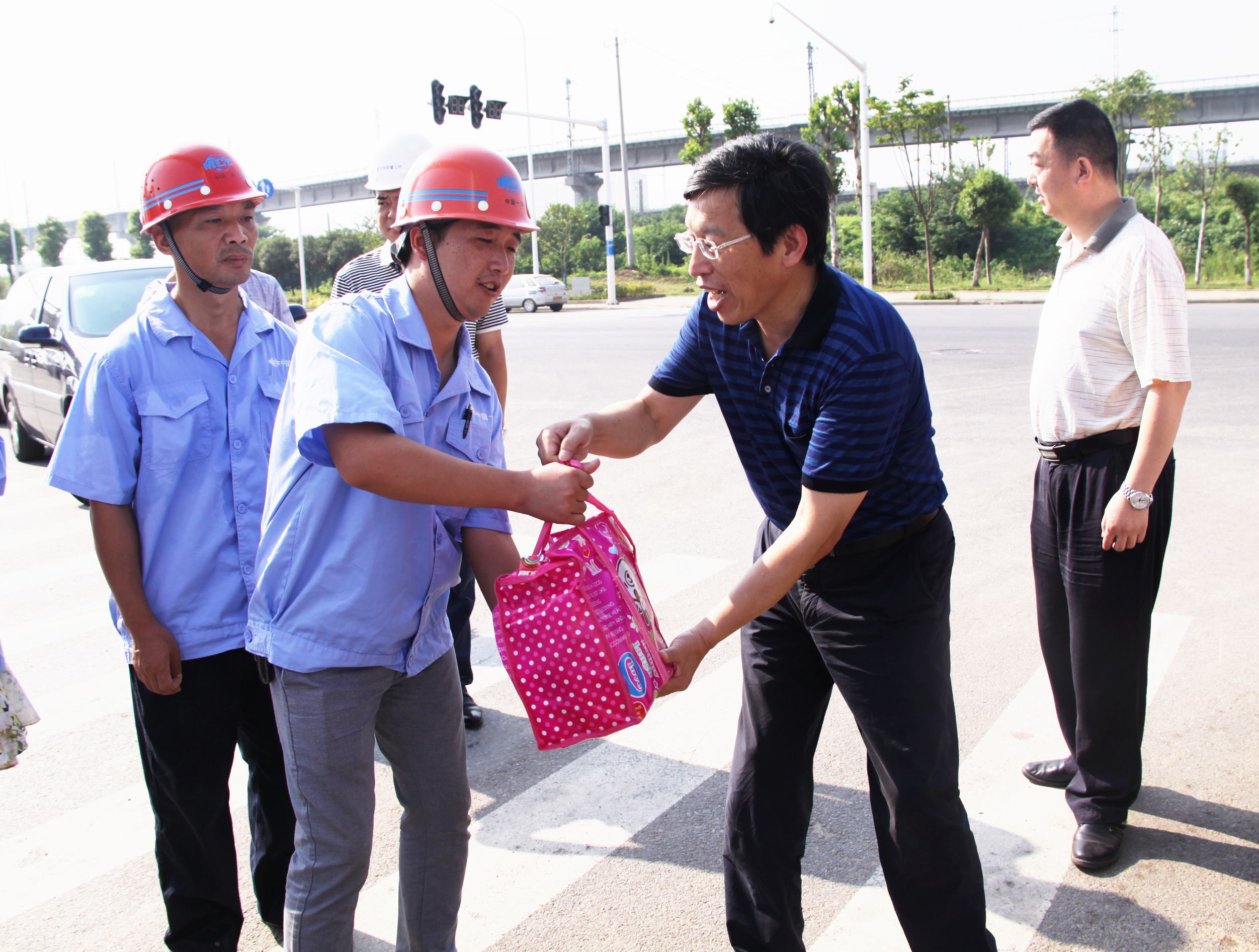 ??? 7月28日,公司黨委書(shū)記蔡輝、紀(jì)委書(shū)記兼工會(huì)主席趙世杰帶領(lǐng)綜合辦公室、監(jiān)理公司、勘測(cè)設(shè)計(jì)院、宏建公司等部門(mén)負(fù)責(zé)人,對(duì)部分外業(yè)現(xiàn)場(chǎng)進(jìn)行了走訪慰問(wèn),為高溫下堅(jiān)持工作的一線員工送上了一份清涼。