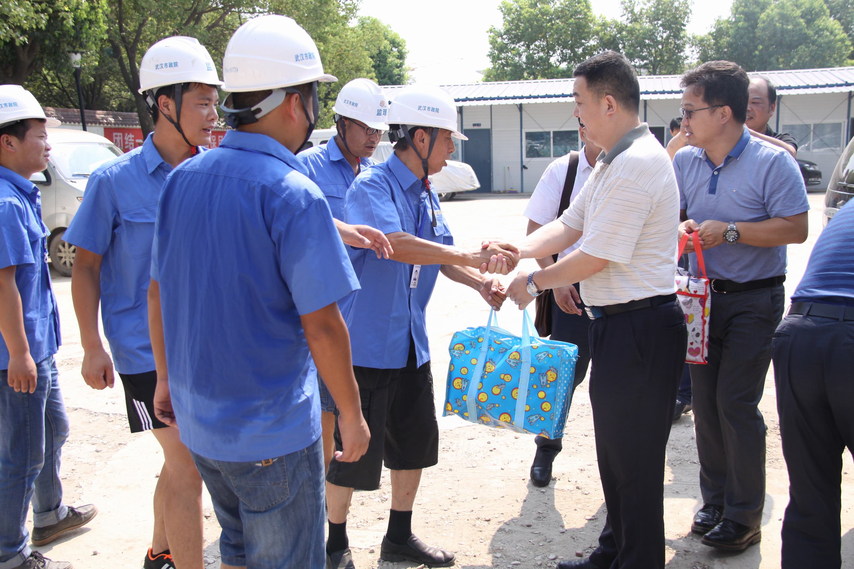 ??? 蔡輝書(shū)記一行先后來(lái)到城華路、漢陽(yáng)海綿城市示范區(qū)、黃家湖污水處理廠等工地現(xiàn)場(chǎng),為堅(jiān)守在現(xiàn)場(chǎng)的員工們送上消暑慰問(wèn)品。公司領(lǐng)導(dǎo)聽(tīng)取了現(xiàn)場(chǎng)負(fù)責(zé)人的工作情況匯報(bào),詳細(xì)詢(xún)問(wèn)了員工們的工作和生活情況,并叮囑他們注意高溫天氣下的工作安全。同時(shí)要求相關(guān)部門(mén)負(fù)責(zé)人合理安排工作時(shí)間,做好人員調(diào)配,制定防暑降溫工作預(yù)案,保證一線員工的身體健康。